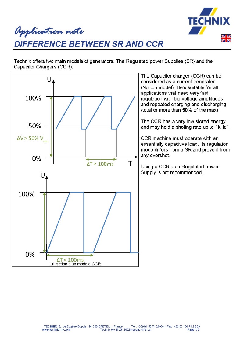 The CCR has a very low stored energy and may hold a shoting rate up to 1kHz*. CCR machine must operate with an essentially capacitive load. Its regulation mode differs from a SR and prevent from any overshot.